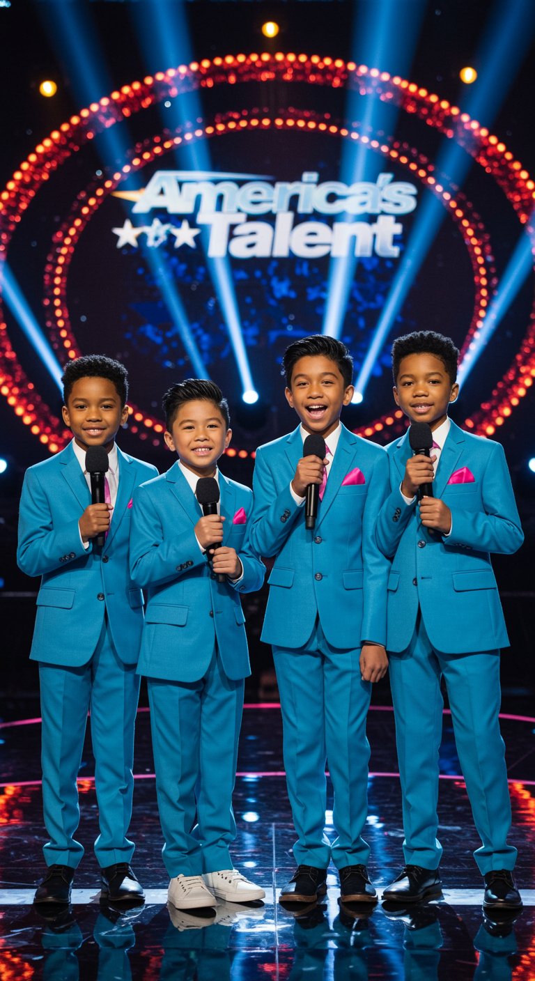 The church was packed that sunny Sunday morning. Families gathered together, kids whispering excitedly, elderly folks settling comfortably into their pews, all eyes turned expectantly toward the four boys who stood quietly at the front, clutching their microphones. The music started softly—melodious, beautiful, and reverent.