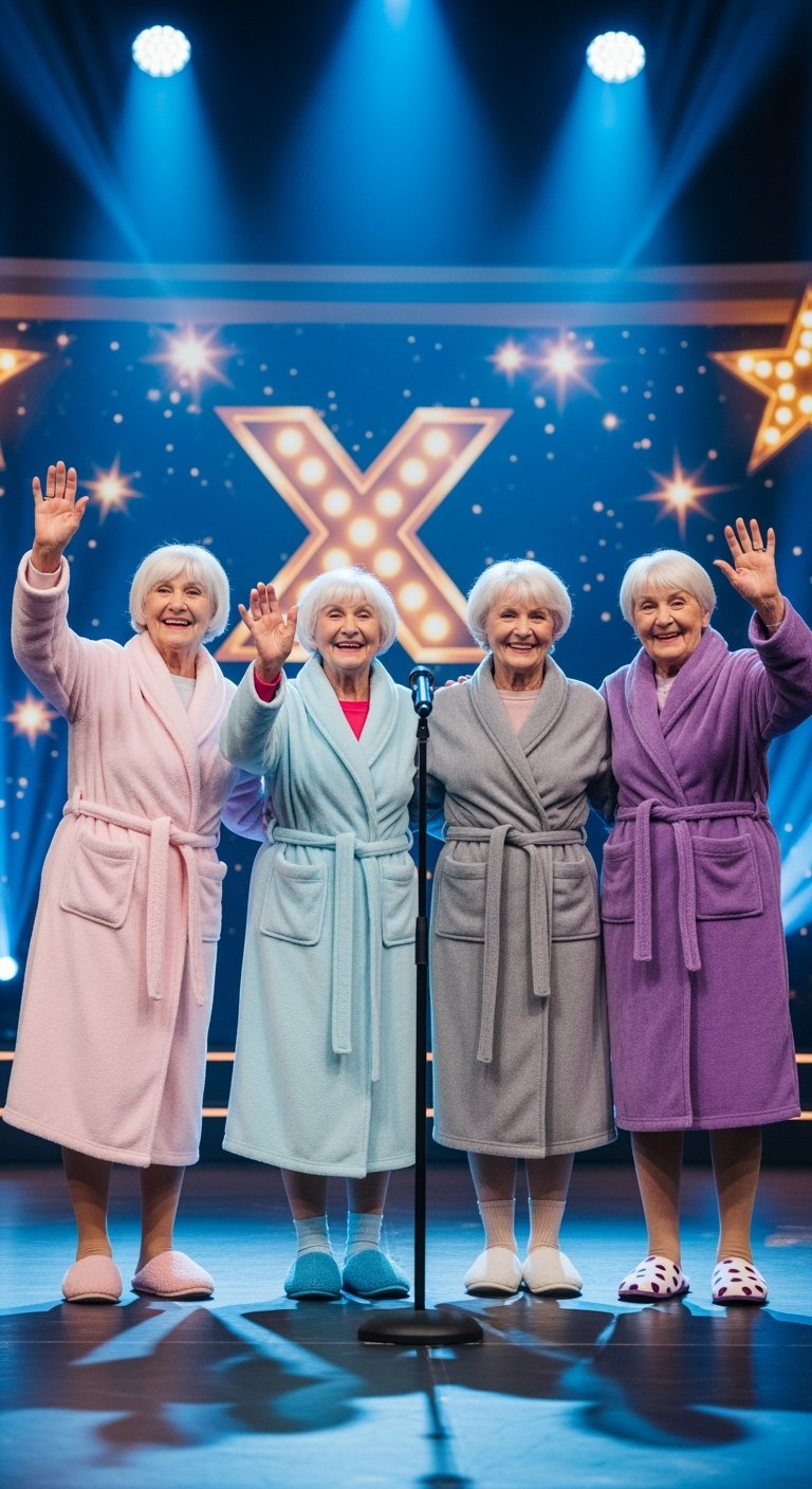 The Britain’s Got Talent 2024 stage lit up with surprise and joy as a group called the Midlife Movers walked out — not in sequins or stage costumes, but in cozy bathrobes. The four elderly women were all smiles as they stood confidently before the judges, immediately charming the crowd with their playful presentation.