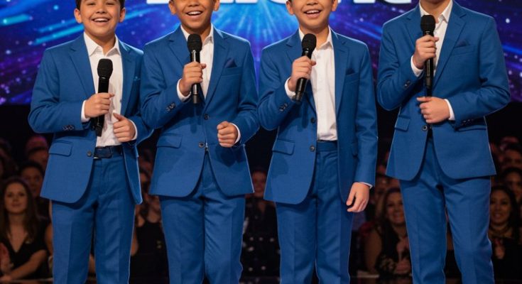The church was packed that sunny Sunday morning. Families gathered together, kids whispering excitedly, elderly folks settling comfortably into their pews, all eyes turned expectantly toward the four boys who stood quietly at the front, clutching their microphones. The music started softly—melodious, beautiful, and reverent.