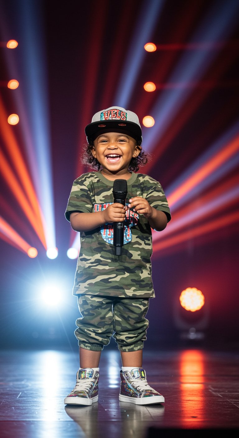 The lights dimmed, the stage illuminated softly, casting a gentle glow around Ava’s small figure as she took her place center stage. Her pale lavender dress sparkled under the spotlight, her shoes shining like stars. Silence fell swiftly as the audience waited, intrigued by the tiny singer standing fearlessly in front of thousands of curious eyes.