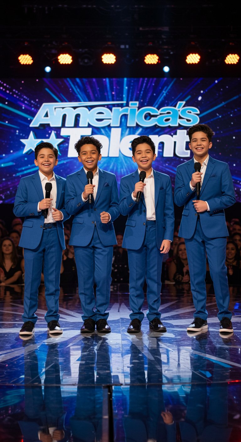 The church was packed that sunny Sunday morning. Families gathered together, kids whispering excitedly, elderly folks settling comfortably into their pews, all eyes turned expectantly toward the four boys who stood quietly at the front, clutching their microphones. The music started softly—melodious, beautiful, and reverent.
