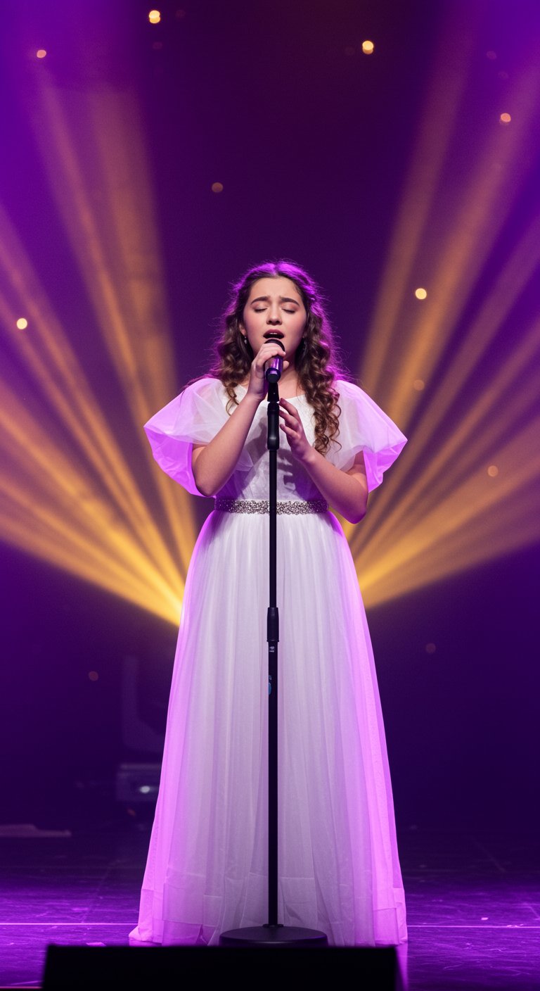 Her voice was delicate, yet powerful — a balance most adult artists struggle to achieve. The purity of her tone, paired with the emotion in her delivery, instantly silenced the audience. There were no flashy runs, no over-the-top theatrics — just a voice telling a story straight from the heart.