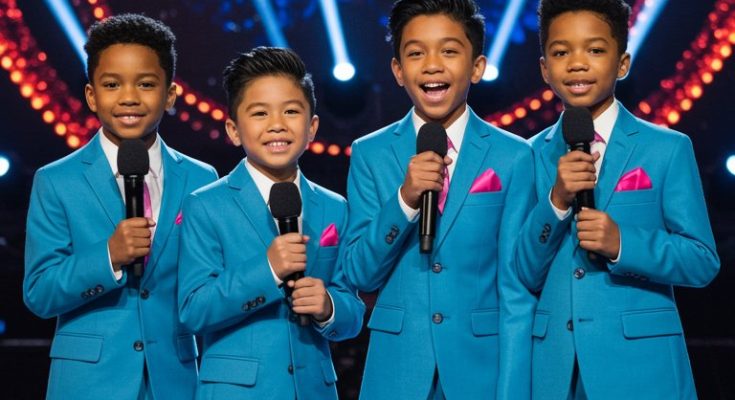The church was packed that sunny Sunday morning. Families gathered together, kids whispering excitedly, elderly folks settling comfortably into their pews, all eyes turned expectantly toward the four boys who stood quietly at the front, clutching their microphones. The music started softly—melodious, beautiful, and reverent.