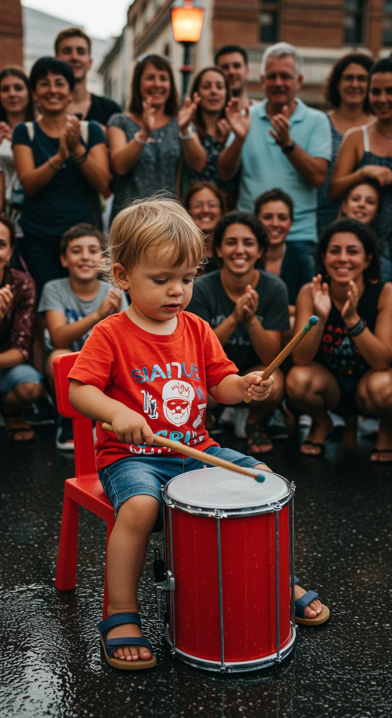 There, standing on the sidewalk, was a 1-year-old boy, barely steady on his feet. In front of him, a microphone too big for his little hands. No one paid attention at first—after all, what could a baby possibly do?