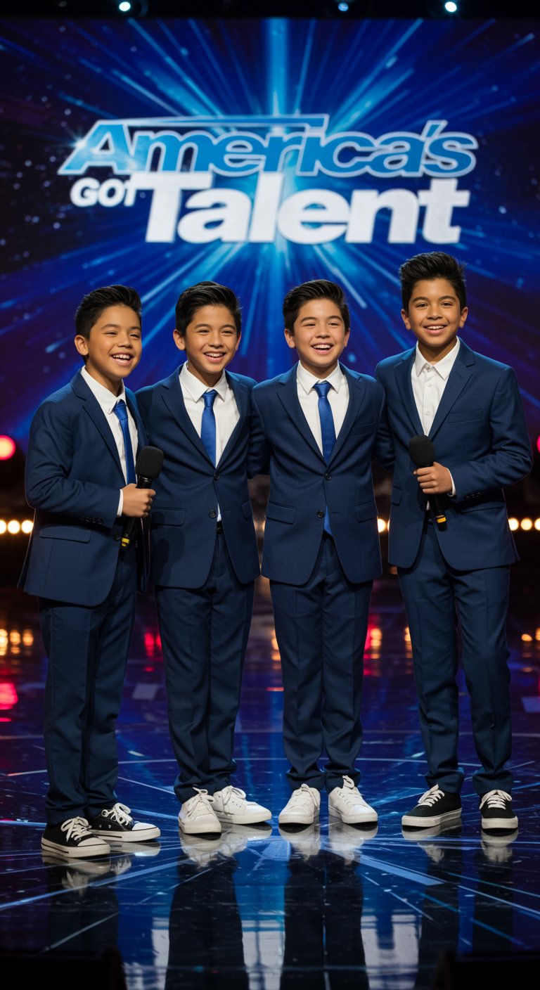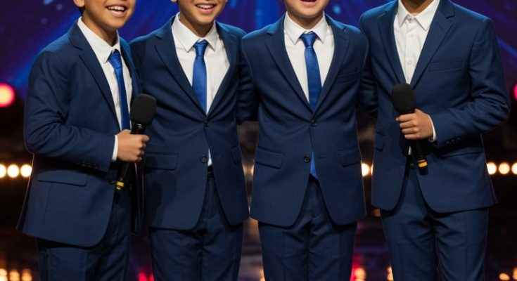 The church was packed that sunny Sunday morning. Families gathered together, kids whispering excitedly, elderly folks settling comfortably into their pews, all eyes turned expectantly toward the four boys who stood quietly at the front, clutching their microphones. The music started softly—melodious, beautiful, and reverent.