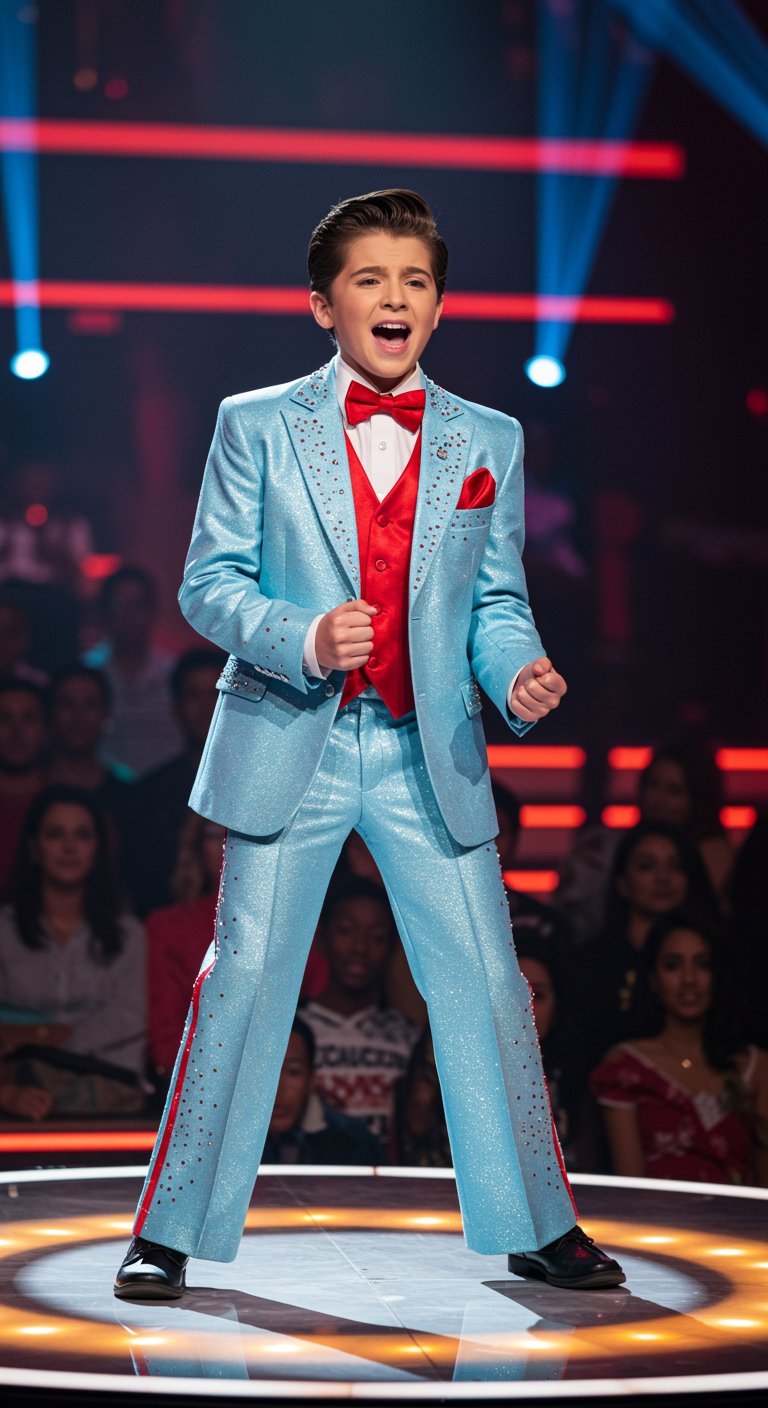 The crowd buzzed with anticipation as an 8-year-old boy walked onto the stage, gripping the microphone with tiny but steady hands. His slicked-back hair and confident stance gave off an old-school rock ‘n’ roll vibe, but no one was prepared for what was about to happen.