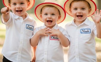 Under the warm glow of stage lights, three little performers stand side by side—smiling, confident, and completely in sync.