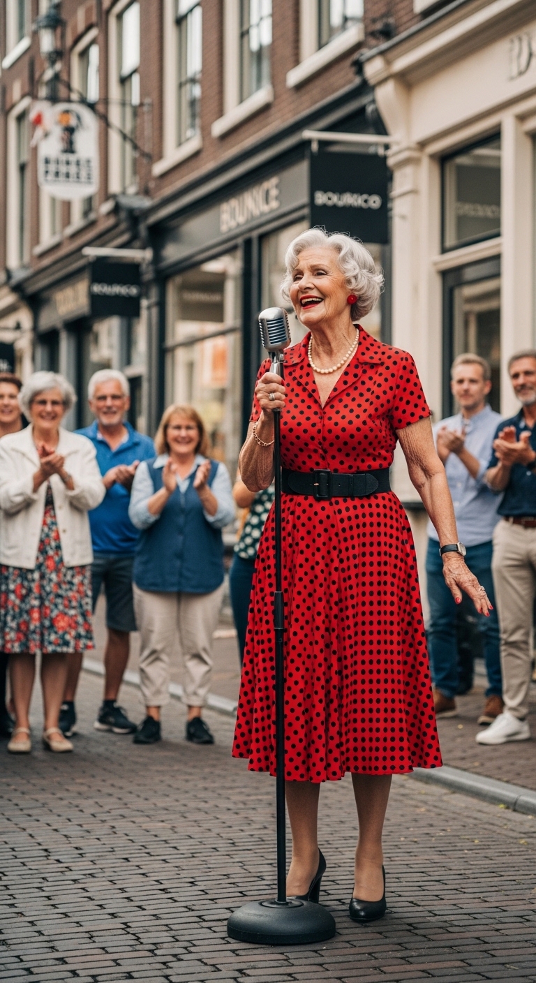People barely glanced at her. Just another grandma enjoying the city, they thought. She wasn’t here to perform.