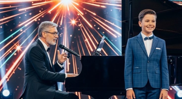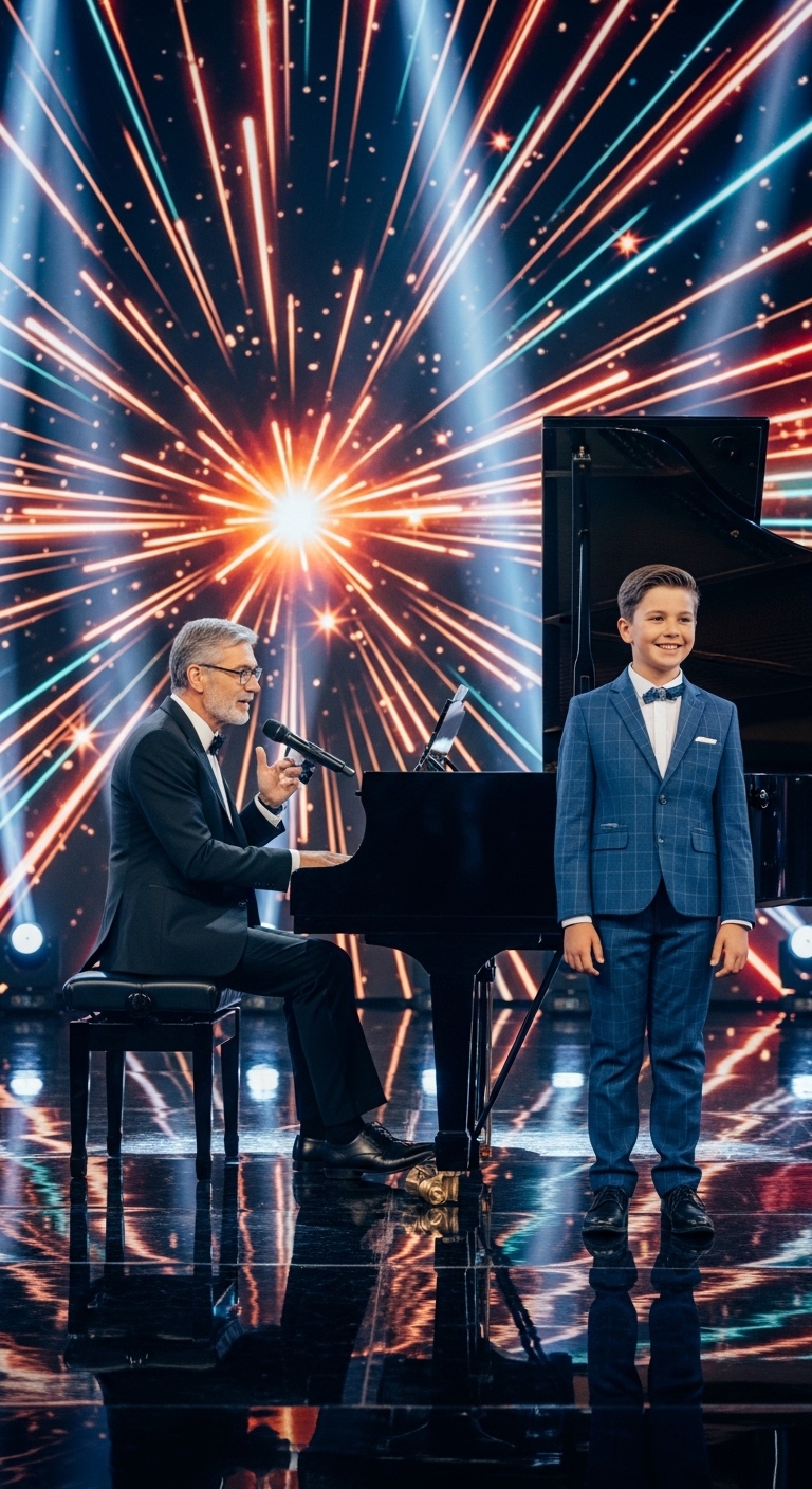 Beside him, a mentor sits at the piano, guiding the moment with quiet strength. It’s more than just a performance—it’s a connection between generations, between experience and new beginnings.