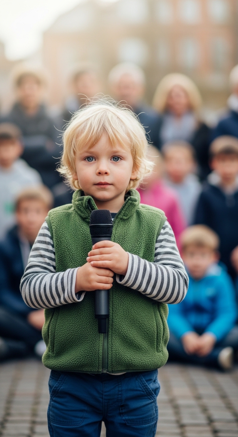 Just a child, a microphone, and a crowd waiting to listen.