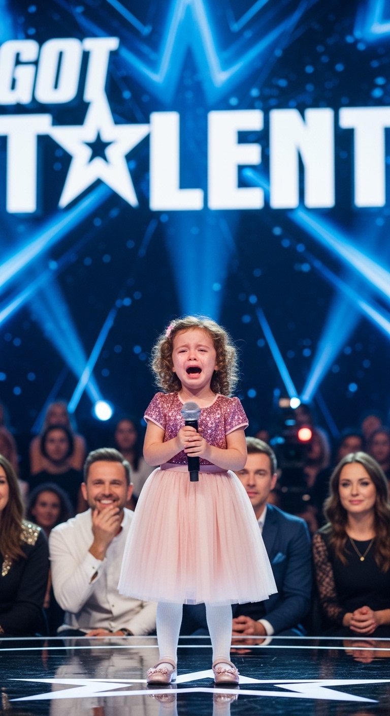 The audience was stunned when this little girl stepped onto the talent show stage holding a microphone with tears streaming down her face. At such a young age, no one expected the emotional moment that was about to unfold.