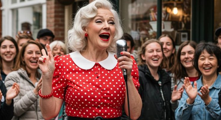 Her voice was raw, deep, powerful. Not a frail whisper, not a trembling tune, but a commanding sound that reached straight into the hearts of everyone listening. A man mid-conversation stopped talking, mouth hanging open. A teenager filming for fun suddenly tightened their grip on the phone, realizing they were witnessing something extraordinary.