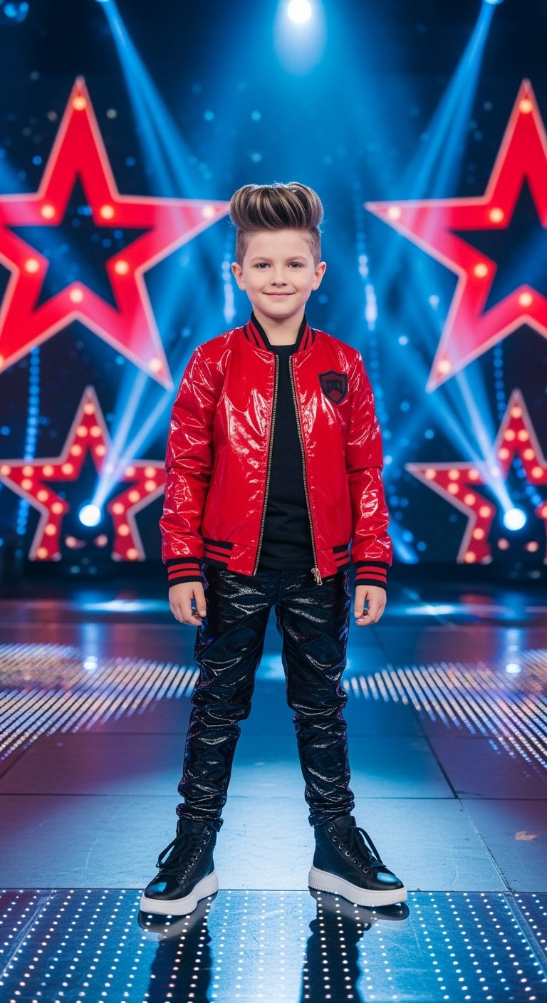 The America’s Got Talent stage turned electric as an 8-year-old dancer took center stage. Dressed in a striking red and black sequin jacket and shiny leather pants, he exuded confidence that belied his age.