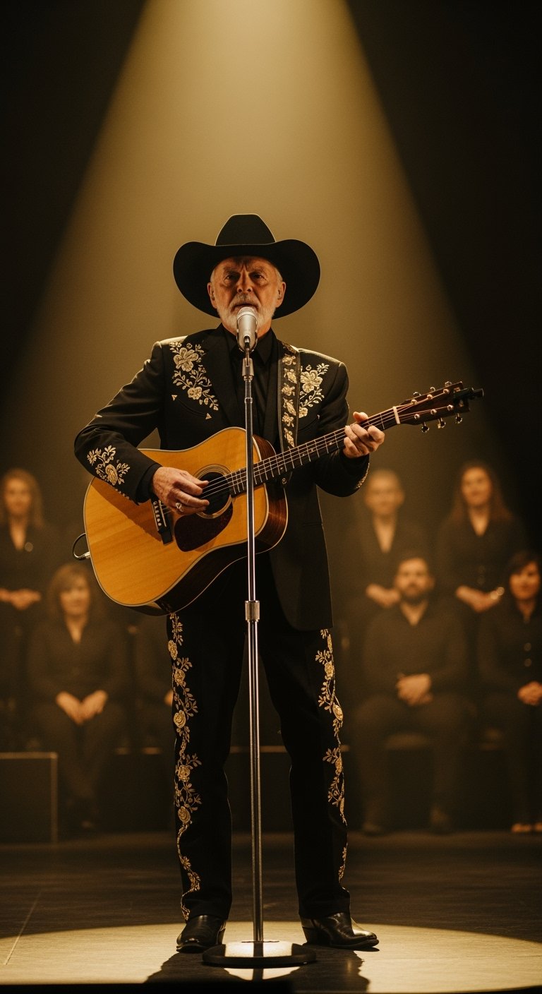It wasn’t just a performance—it was a living tribute to love, loss, and the passage of time. Dressed in a classic black cowboy hat and embroidered suit, Jackson looked every bit the timeless storyteller. As the first notes echoed through the hall, audience members instinctively quieted, fully present for the emotional weight of what was to come.