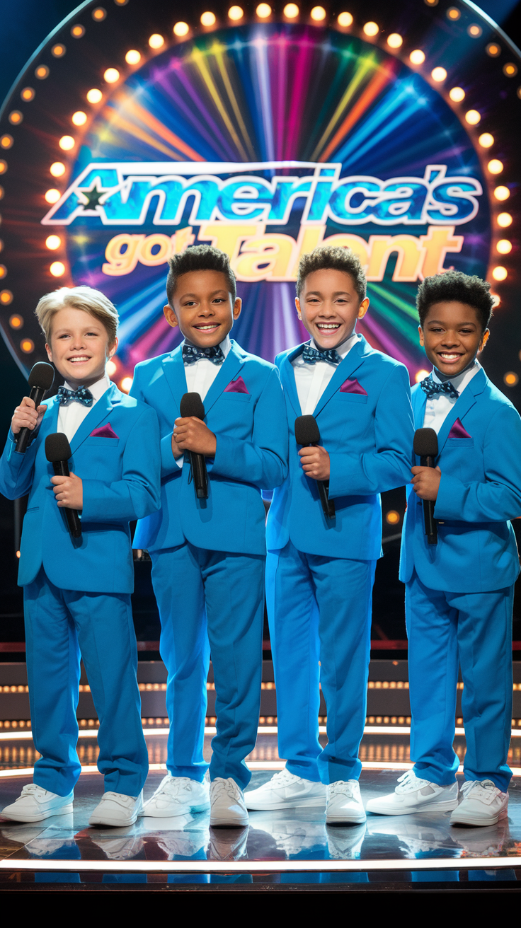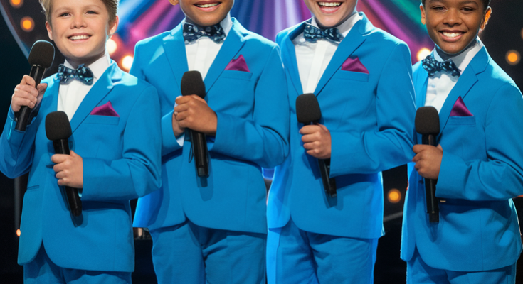 The church was packed that sunny Sunday morning. Families gathered together, kids whispering excitedly, elderly folks settling comfortably into their pews, all eyes turned expectantly toward the four boys who stood quietly at the front, clutching their microphones. The music started softly—melodious, beautiful, and reverent.